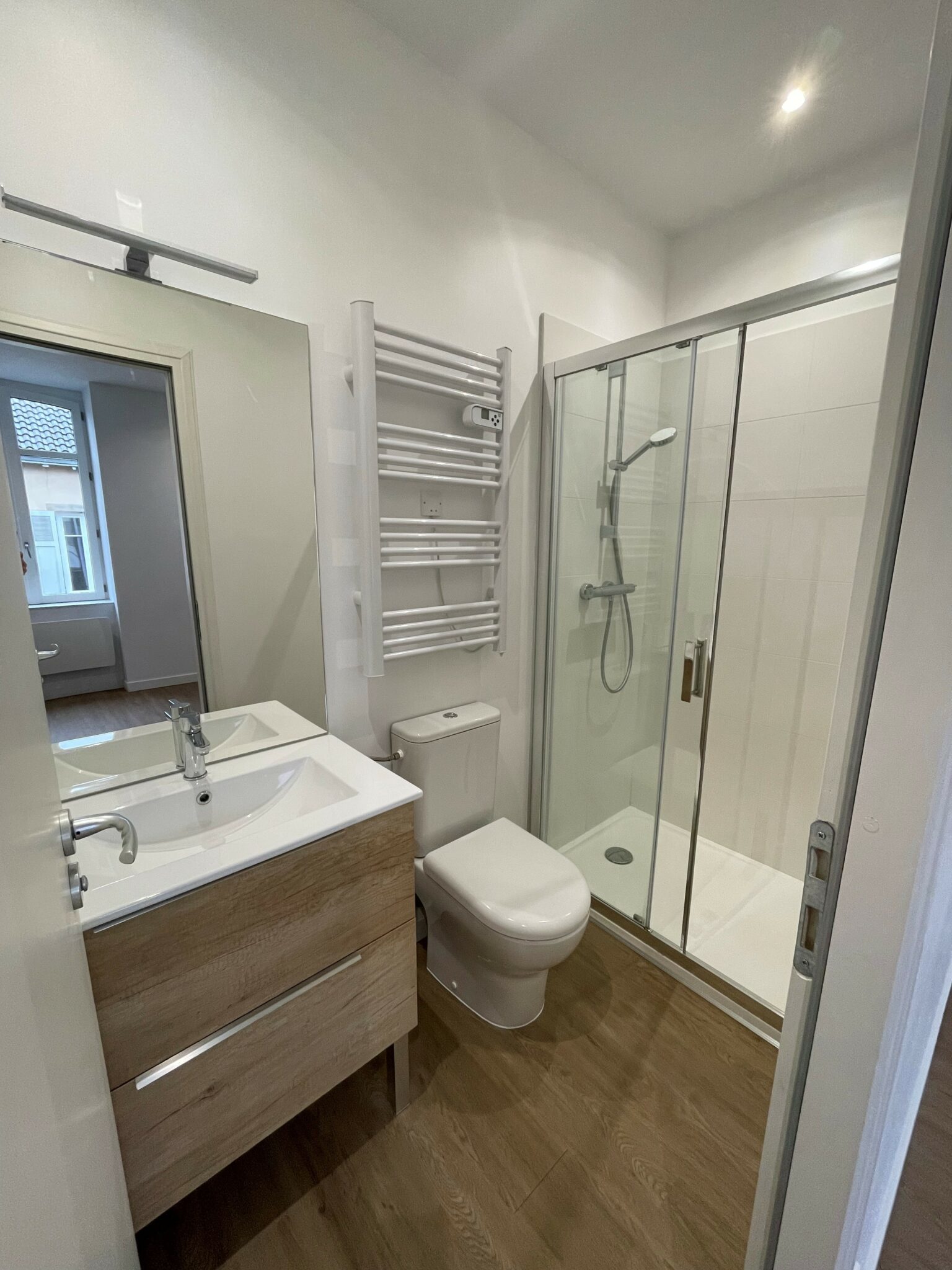Une salle d’eau moderne avec WC.